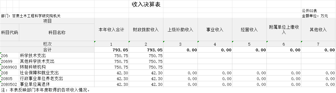 二、收入決算表