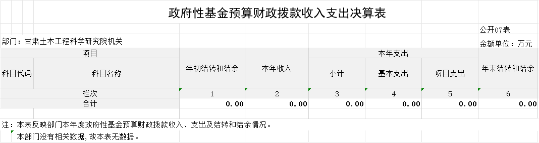 2023年度政府性基金預算財政撥款年初結轉和結余0.00萬元,本年收入0.00萬元,本年支出 0.00萬元,年末結轉和結余 0.00萬元,